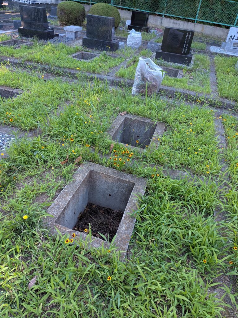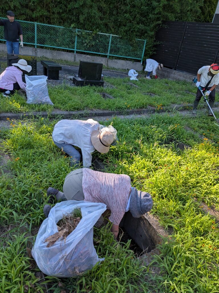 2回目の墓地清掃を行いました。暑さを少しでも避けようと6時45分から作業を始め、8時過ぎにすべて終了しました。