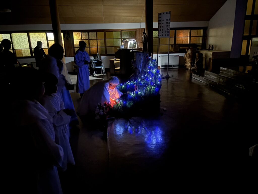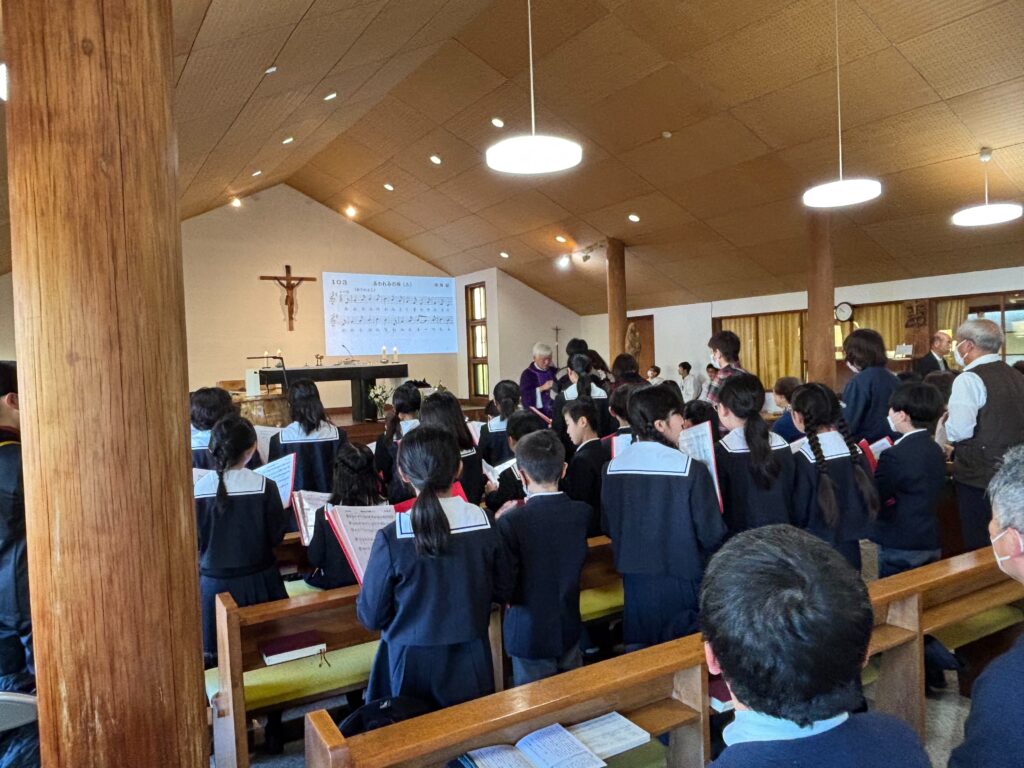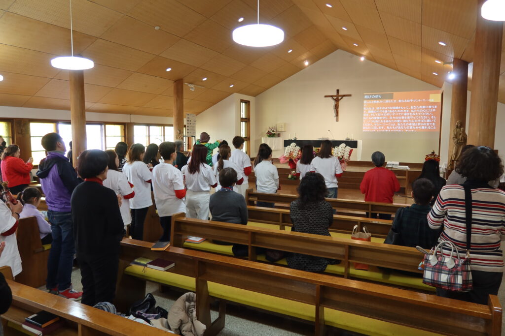 アドヴェントクランツの全てのろうそくに火が灯された待降節第四主日、郡山ザベリオ学園小学校の聖歌隊のみなさんが美しい歌声を聖堂に響かせてくださいました。