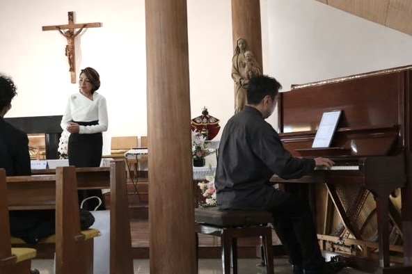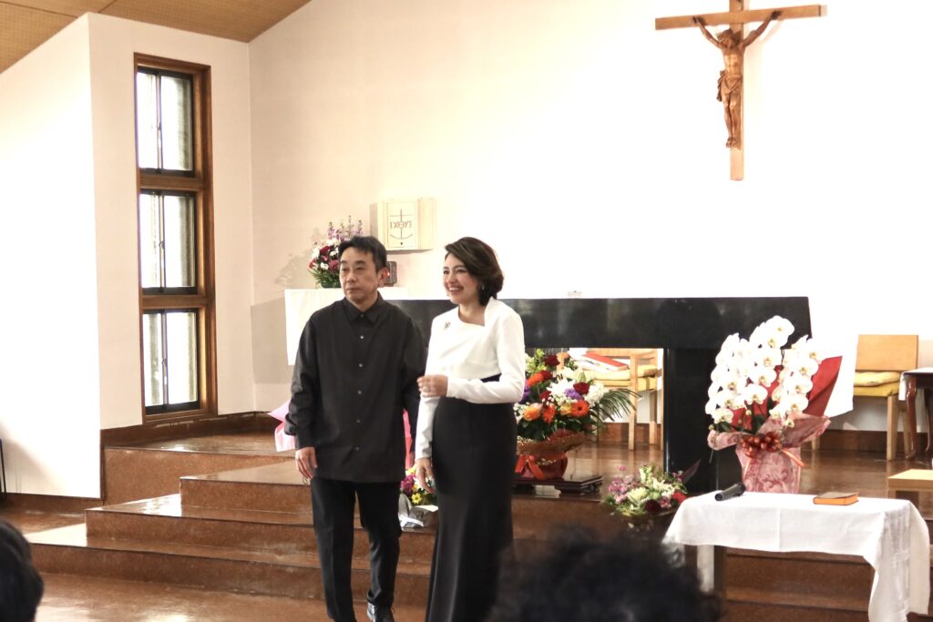 郡山教会のオルガニスト向山良作氏の伴奏にのせ、えりかさんの透明感あふれる祈りの歌声が聖堂に響き渡ると、感動のあまり涙する方の姿も見られました。